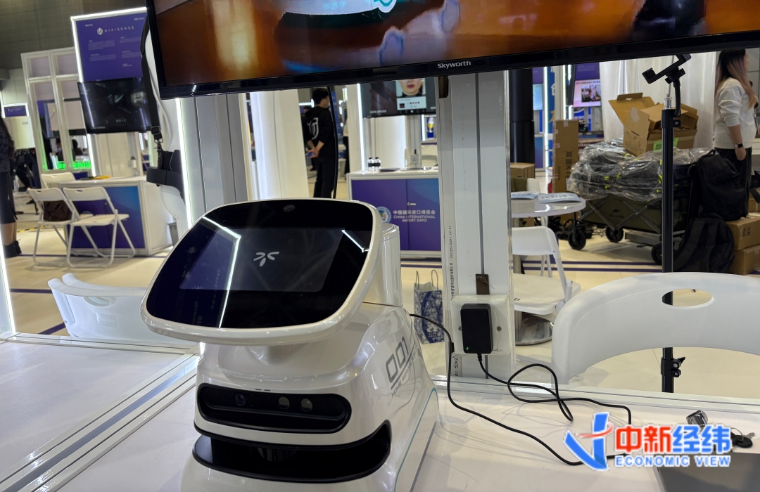“有些老人夜间上厕所比较频繁,很容易摔倒。这款机器人会主动跟随老人,根据老人在厕所待的时间长短,来判断是否需要通过语音交互对老人进行唤醒或者通知家属。”在创新孵化专区,加拿大企业可立克魔科技相关业务负责人张腾腾指着一款能“主动交流”的家庭陪伴机器人对中新经纬说。