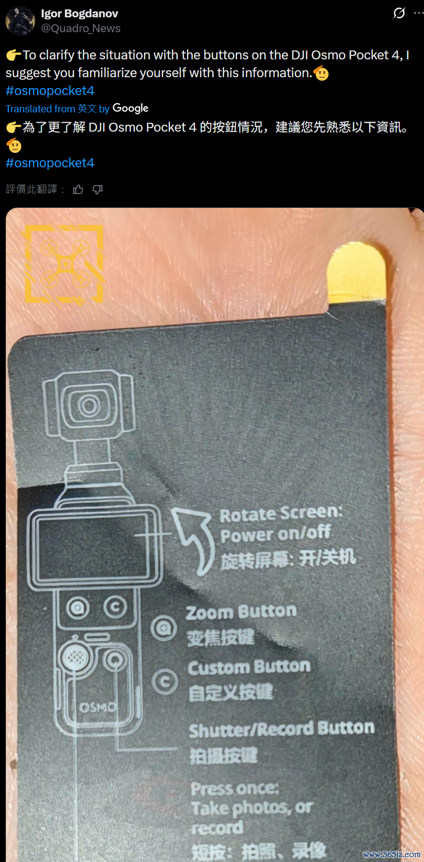 IT之家 1 月 24 日消息,消息人士 gtm_ray 前天在 Reddit 论坛发文巨牛盈,曝光尚未发布的 Osmo Pocket 4 Pro 手持云台相机。