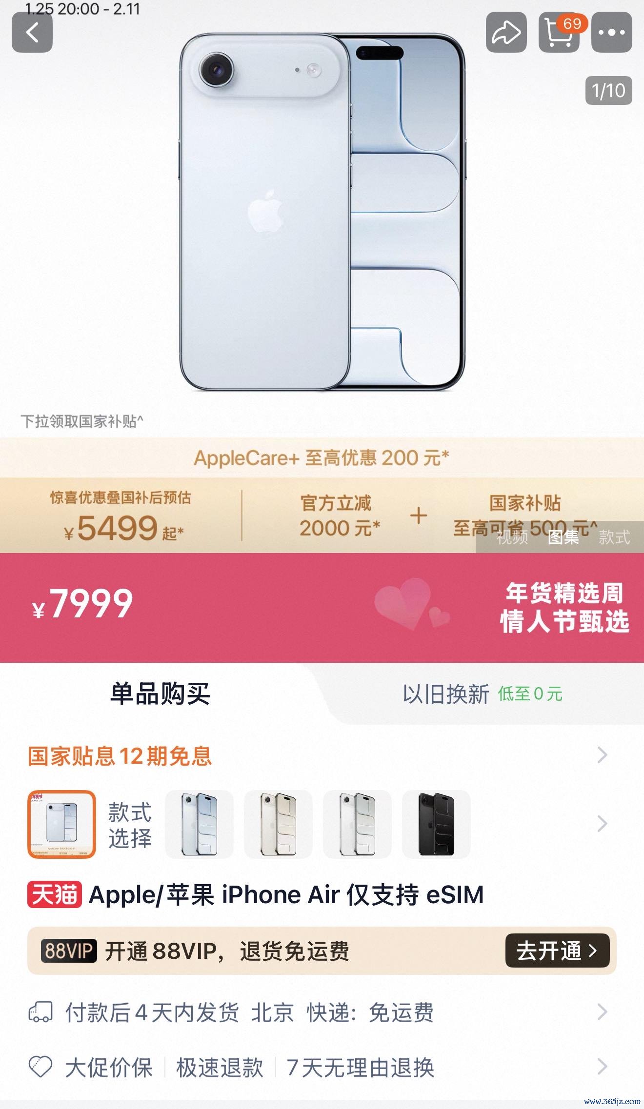 大家应该都看到了,天猫 Apple Store 官方旗舰店即将开启新一轮促销。在这次活动中,去年刚发布的iPhone Air 迎来了史无前例的断崖式降价。